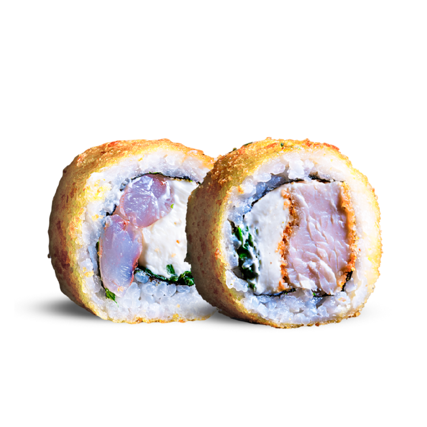 10 rollos rellenos de camaron, queso crema, cebollín, envueltos en tempura o panko. 20 rollos rellenos de pollo, queso crema y cebollín, envuelto en tempura o panko.